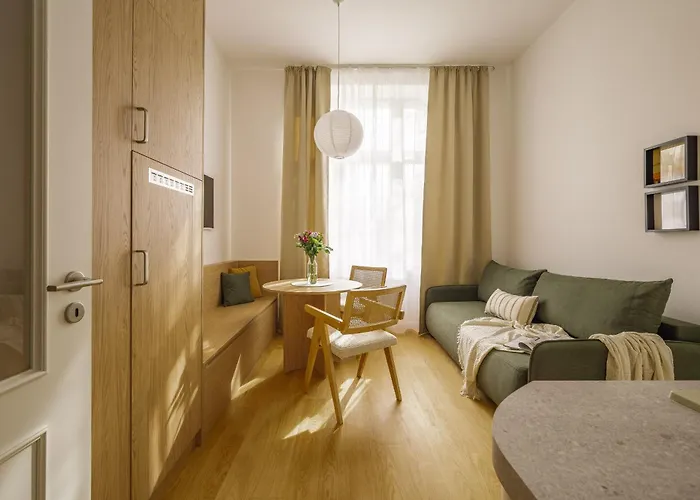 Neben den Annehmlichkeiten für Selbstversorger wie der Küchenzeile bietet diese Unterkünfte den Gästen einen Essbereich, wo sie ihre Mahlzeiten genießen können. Gäste werden in einem Umkreis von 20 km vom Flughafen Vaclav Havel untergebracht.